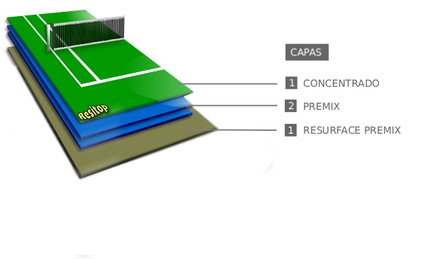 Revestimiento multicapa para la renovación y recuperación de superficies de resinas viejas o desgastadas que presentan un buen estado y no precisan de grandes reparaciones. En instalaciones deportivas multiuso tales como de colegios, ayuntamientos y clubs deportivos para la práctica de los deportes base como el tenis, baloncesto, balón mano, fútbol sala… tanto en interiores como al aire libre.