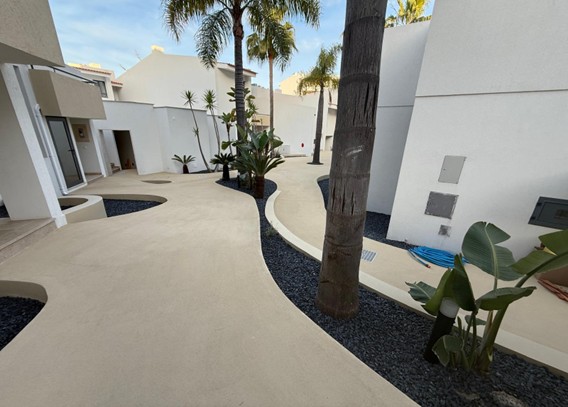 Revestimiento de 1 a 2 mm de espesor, continuo, en colores, impermeable, altamente resistente al desgaste y a la acción de los agentes atmosféricos en los climas más extremos, su micro rugosidad lo hace idóneo para el tránsito y rodadura segura al aire libre.